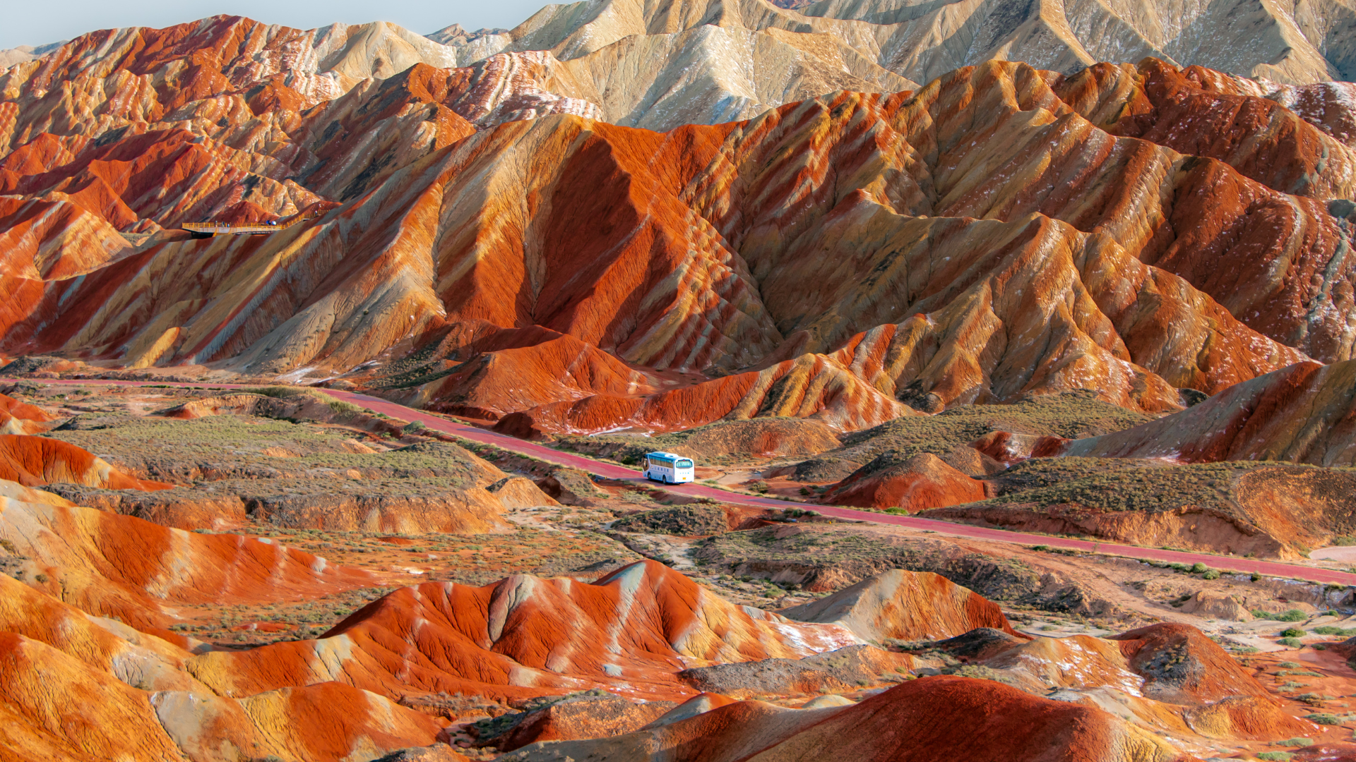 Hãy tưởng tượng bạn đang đứng trước những dãy núi không phải màu xanh lá, mà là sự pha trộn của đỏ, cam, vàng, xanh lục, trải dài như một bức tranh sơn dầu khổng lồ đang tan chảy dưới ánh mặt trời. Đó chính là Đan Hà Địa Chất – "vùng đất cầu vồng" có thật tại Cam Túc.