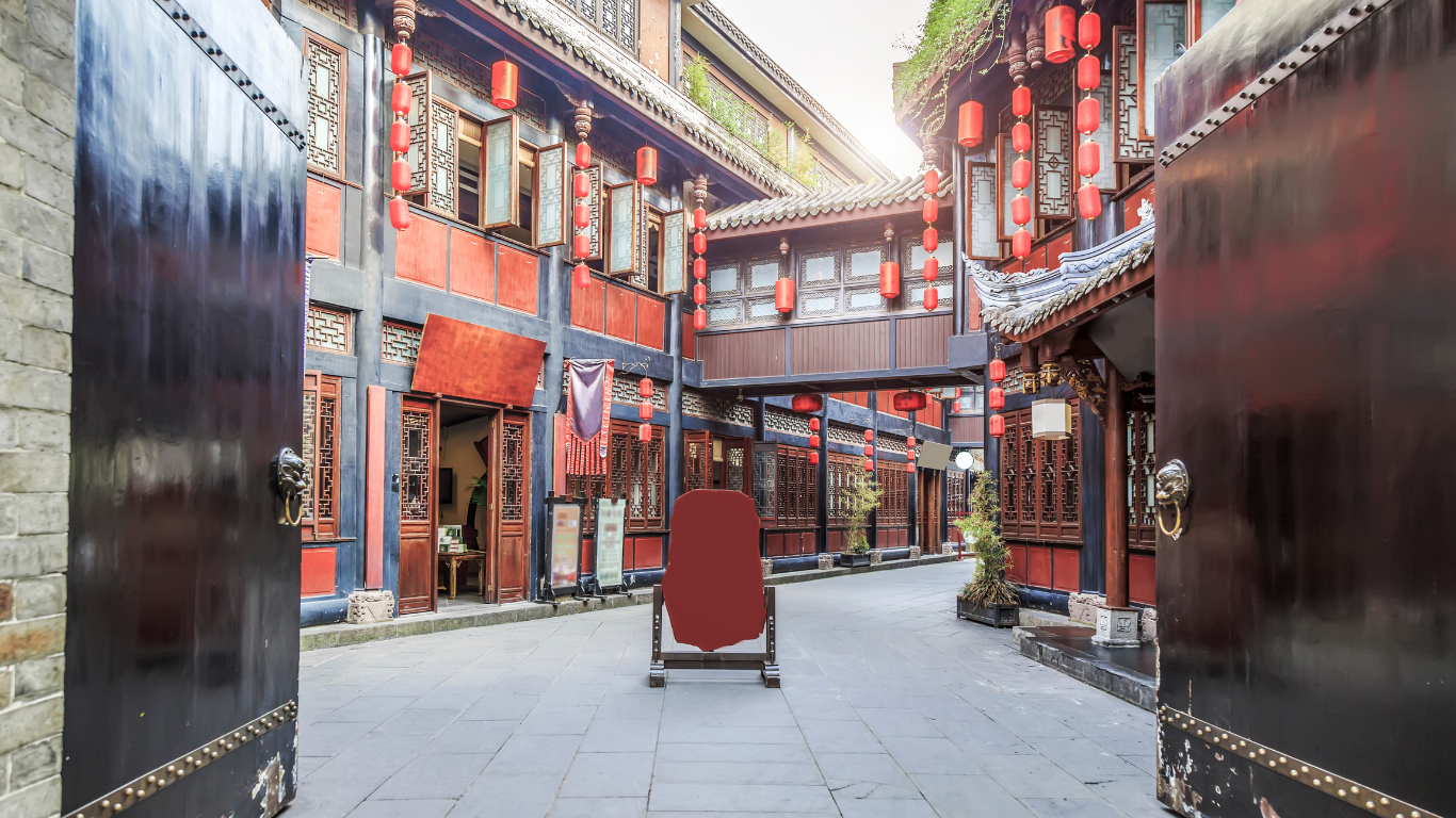 Con phố rực rỡ đèn lồng đỏ, kiến trúc gỗ truyền thống, hàng quán san sát bán đồ thủ công, trà đạo, ẩm thực Tứ Xuyên… Tất cả tạo nên không gian vừa náo nhiệt vừa đậm chất cổ trang Trung Hoa.