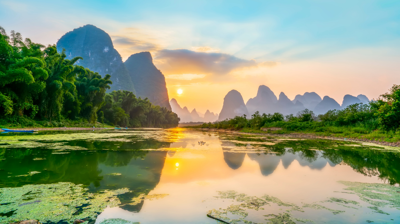 Nhắc đến Quế Lâm, không thể bỏ qua sông Ly, dòng sông nổi tiếng với làn nước xanh biếc, uốn lượn giữa núi non trùng điệp. Cảnh sắc hai bên bờ sông Ly thường xuyên xuất hiện trong tranh thủy mặc, thơ ca cổ và cả trên tiền giấy Trung Quốc. Đây không chỉ là thắng cảnh mà còn là biểu tượng văn hóa, góp phần định hình hình ảnh Quế Lâm trong tâm trí du khách quốc tế tìm kiếm tour du lịch Trung Quốc mang đậm giá trị truyền thống.
