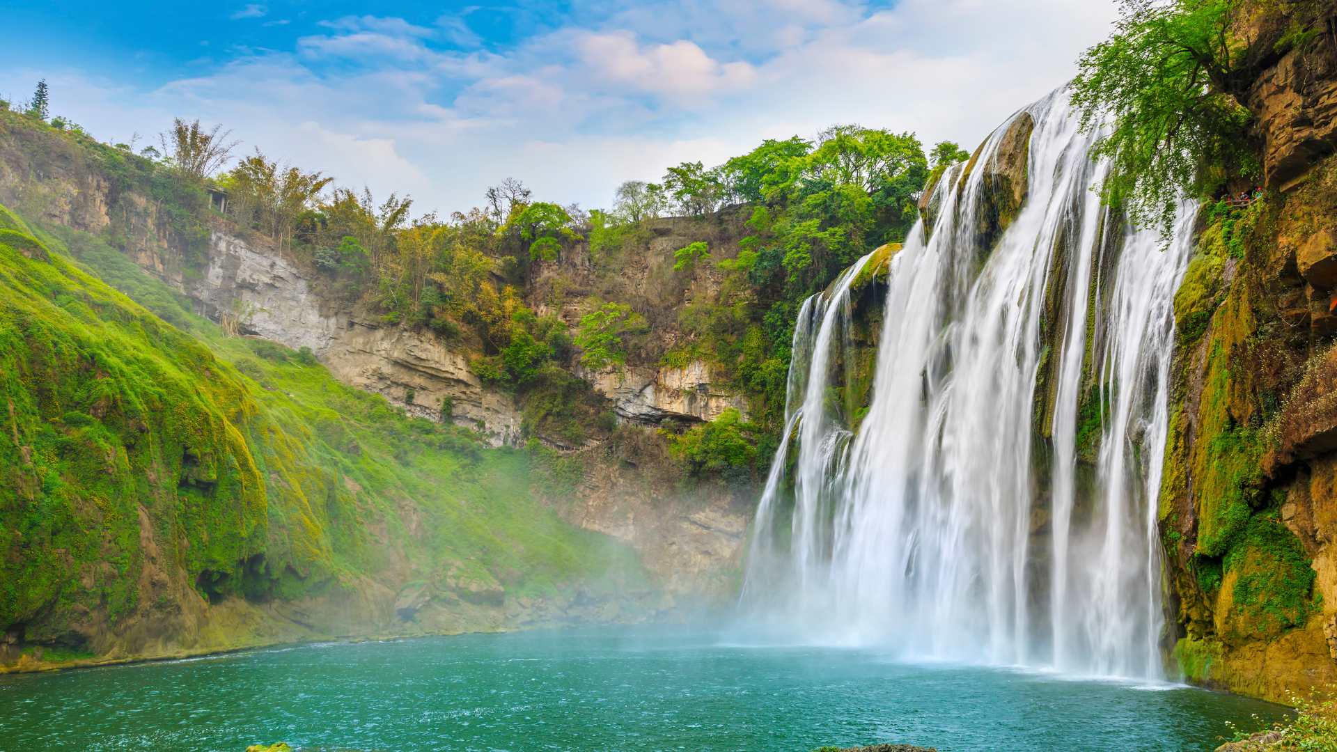 Được mệnh danh là "Đệ nhất thác" tại Trung Quốc, thác Hoàng Quả Thụ không chỉ gây ấn tượng bởi độ cao hùng vĩ mà còn bởi cấu trúc độc đáo. Đây là thác nước duy nhất trên thế giới có thể chiêm ngưỡng từ 6 góc độ khác nhau: trên, dưới, trái, phải, trước và đặc biệt là từ bên trong động Thủy Liêm phía sau màn nước đổ. Tiếng gầm vang của thác nước giữa đại ngàn chắc chắn sẽ là một nốt nhạc mạnh mẽ trong chuyến hành trình tour du lịch Trung Quốc của bạn.