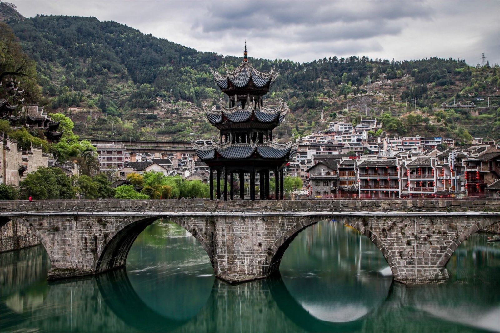 Khác với sự nhộn nhịp của các cổ trấn khác, Trấn Viễn mang vẻ đẹp thanh bình với dòng sông Vũ Dương xanh ngắt uốn lượn hình chữ S ôm lấy phố cổ. Những ngôi nhà mang kiến trúc triều Minh, Thanh soi bóng xuống mặt nước tạo nên một bức tranh thủy mặc hữu tình. Đi dạo trên những con phố lát đá xanh, lắng nghe tiếng mái chèo khua nước, bạn sẽ cảm nhận được nhịp sống chậm rãi, tách biệt hoàn toàn với sự xô bồ của thế giới hiện đại.