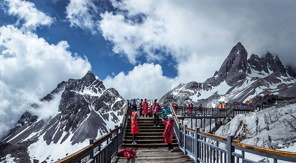 Núi tuyết Ngọc Long là hình ảnh gắn liền với Lệ Giang và cũng là một trong những ngọn núi tuyết nổi tiếng nhất Trung Quốc. Đỉnh núi quanh năm phủ tuyết trắng, nổi bật giữa bầu trời xanh và thung lũng rộng lớn.