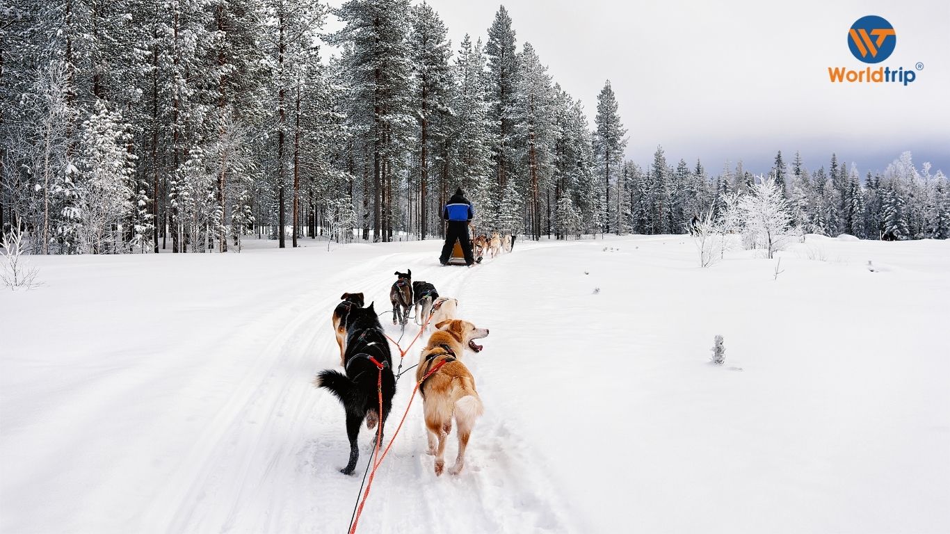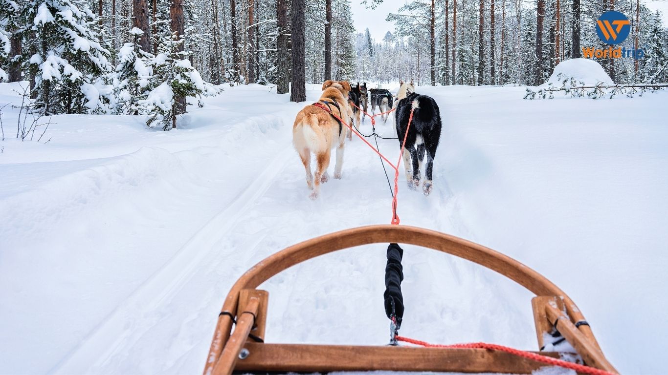 b.     Tại Phần Lan : trải nhiệm chó kéo Husky, nhận giấy chứng nhận Vượt Qua Vòng Bắc Cực