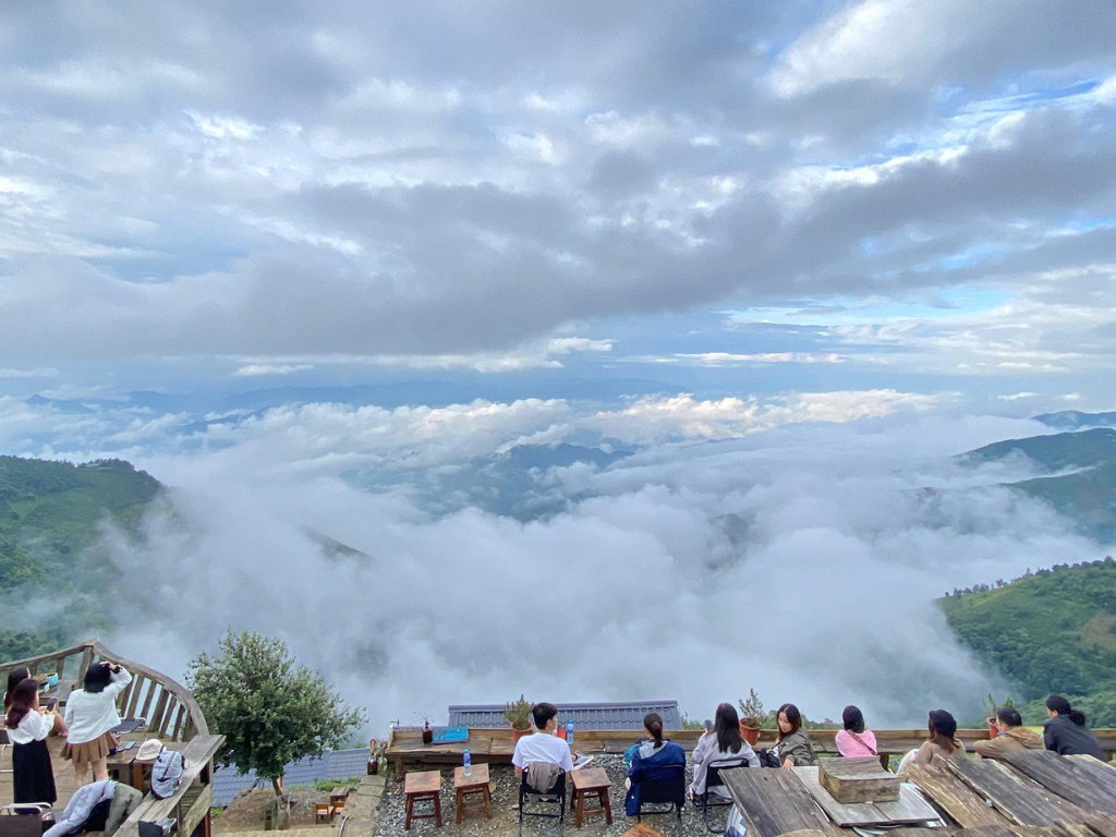 “biển” mây. Khách du lịch đều tỏ ra thích thú khi được check-in, sống ảo tại Mỏm Cá Heo.